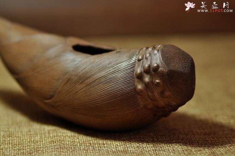 美壶网特别邀请民间高手制作,泥料以自然界中竹笋形态,特别调配.使紫砂作品以自然逼真的形态