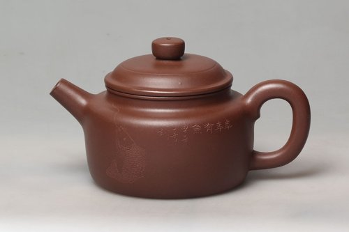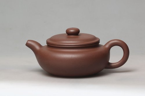 经过多年的努力和实践,周益芳的作品已经被多家省内外博物馆收藏,尤其是圆器壶形的制作,受到紫砂爱好者们的一致好评和追捧。“大线圆”那能容下10.8公斤水量的壶体,对于紫砂壶来说真是“大”不可言。壶体虽大,却给人细腻柔滑的感受。壶腹中间装饰着一条线,把壶分为上下两部,整个线条流畅稳定,完全反映了作者制壶技艺的高超。壶中的曲线优美,自然,明快,让人感觉畅快流利。壶面光滑细腻,完全没有因为大而产生任何的瑕疵。拱桥的壶钮,别致优雅,趣味盎然。大气而不凡精细的创作,足以让人为紫砂艺术的后继有人感到欣慰。