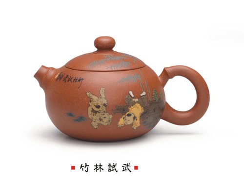 陶艺作品根据五色原矿泥的特性,结合紫砂制品的特征造型,坯体的质感等量身设计画面,表现题材不拘一格,每件作品力求精雕细琢,匠心独运。