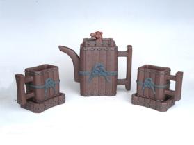 首创抽拉壶盖。北京奥运壶、九九回归壶、辉煌壶,以及蹬狮壶,都采用抽拉式壶盖,不用打开壶盖,只需按动盖上的小屉,便显现出注水口,底盖放茶叶,注水方便简捷。