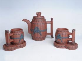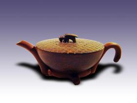 代表作《战国竹简》系列(计13篇)首创银雀山出土文物《孙子兵法》竹简移植到紫砂壶上,壶面——装饰竹简,并篆刻《孙子兵法》;壶身——由绳线捆束;壶把——塑成古代兵器、竹片和毛笔;壶钮——有墨段形有卧虎形,有孔明帽形;托盘——来视是竹简,俯视为砚台,巧妙将文房四宝寓作品之中。《战国竹简壶》独一无二,堪称一绝,该壶在中国收藏家协会,中国收藏家喜爱的工艺美术大师和精英评选活动中获金奖。
