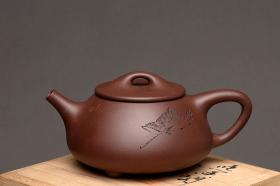 陆轶舟新作 曼生遗韵 刻绘别具一格 扁石 优质段泥 传统器形 编号3765 陆轶舟