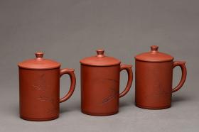 格调雅玩 陆轶舟老师精刻~梅 兰 竹 好料盖杯 编号1773 陆轶舟