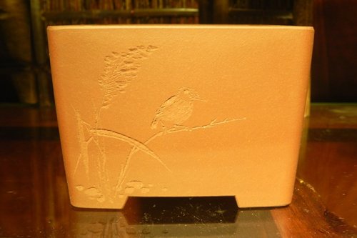 笔名木言,自幼喜书画,后拜师毛国强大师,勤习书法,苦练刀法,在紫砂坯体上一展所长!
