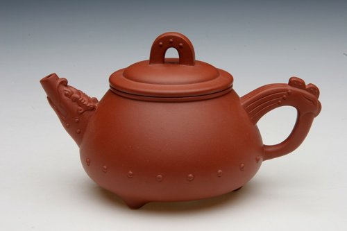 它吸取了传统经典壶式传炉壶的造型元素,进行再创造,此式中宫紧聚,四面开张,壶盖高耸,咀、把横向拉出 而富动感,四足迈开,使附件张扬的态势归于安定稳重,纽、盖、口、身、足从上而下,线型方圆交替节奏分明,气势恢弘。