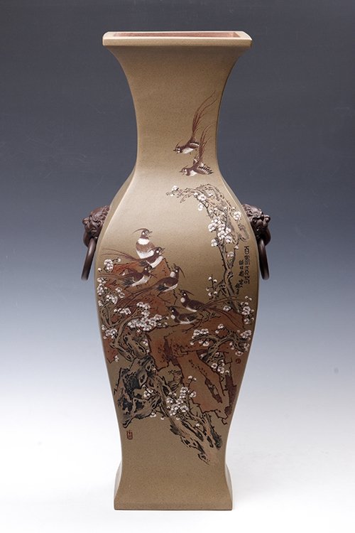 鲍志强,中国陶瓷艺术大师,中国宜兴紫砂文化艺术研究会副会长,中国紫砂博物馆总工程师,宜兴方圆紫砂工艺有限公司总工程师,江苏省宜兴紫砂工艺厂总工程师。1946年生于江苏宜兴蜀山,字乐人,室号“醉陶斋”。1959年进厂师从谈尧坤、范泽林学习陶刻。1962年又转师老艺人吴云根门下学习制壶技艺,1965年得著名陶刻家任淦庭先生教泽,从事陶刻创作,1975年进修中央工艺美术学院陶瓷艺术系,后致力于紫砂艺术的创作研究。
