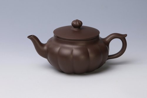 谢曼伦承继紫砂花货朱、蒋二氏名门。花货塑器类紫砂是属于模拟自然形态的陶艺作品,这类作品的造型素材都是取自于自然植物、花叶、果实、根茎和枝叶,或配以鸟禽等组合,经过概括、夸张、取舍、因器定形等手法,构成壶艺造型形态,艺术地再现自然。