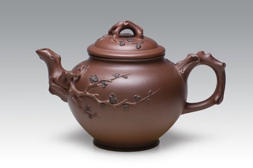 这类仿生象形壶艺作品,按照紫砂与茶文化品茗鉴赏的理与趣相结合的品味要求,做到雅而不俗,用器皿去模拟自然,造型与结构赏用兼备、泥料巧色朴而不艳,得形易出神难。谢曼伦在多年的紫砂耕耘中,创作出多款以竹、松、梅为题材的优秀代表作品。《桑宝壶》的成功推出,则是她从事花货创意塑造道路上的又一飞跃,并成为其代表作品,得到紫砂爱好者的青睐和壶艺界同仁的高度赞誉。