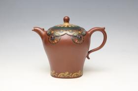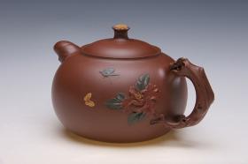 他继承传统,但不墨守成规,勇于探索,更善于创新,在把握紫砂本质语言的同时,把绘画、浮雕、金银丝镶嵌用于壶体装饰,自然地形成 “画在壶上、壶在画中”的立体效果,极大地丰富了紫砂壶艺的文化内涵,增强了艺术神韵和张力。