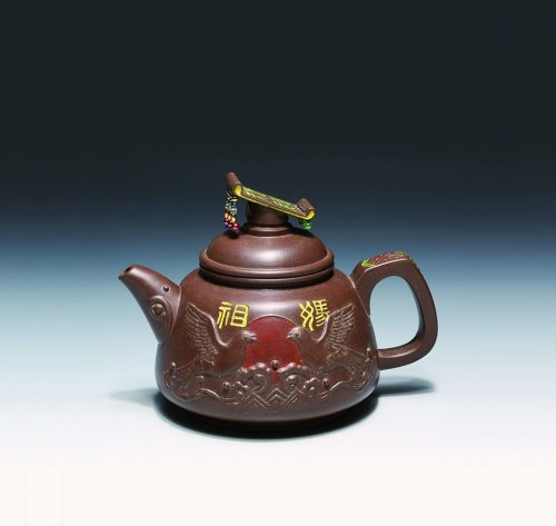 另外他与夫人陆巧英合作的“双英壶”、“金猴拱寿壶”、“历代钱币壶”、“聚宝壶”“龟蛇永寿”、“济公壶”、“玉洁壶”等,在全国陶瓷展、香港宜兴紫砂名壶展上大放异彩。特别是:“济公壶”的造型趣怪,技法精彩,轰动东南亚,掀起了一股“济公壶热”,并受到了全国人大副委员长彭冲和著名科学家周培源的高度评价。他制作了五把“济公壶”选为中央首长出访西欧国家的礼品,在国内受到江渭清、惠浴宇、陈云、品正操、邵华、彭冲、周培源、王光英、刘励英、董良辉、陈至立、刘振元、倪天增、钟敬文、周魏峙、贾芝等首长的接见。