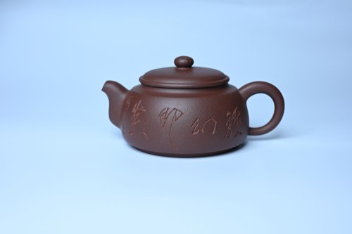 毛国强入室弟子黄云初 特好老紫泥汉瓦壶 名家何水法书法“大彻大悟” 刘世涛伯陶刻 编号34581 黄云初
