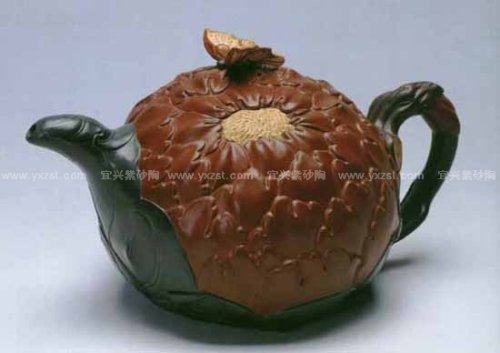 1995年 创作《长寿碧桃壶》,制作巧色《荷塘月色壶》。12月赴台湾参加“紫砂名人名作展”,深受壶友们欢迎。发表《效法自然,提炼自然的花货艺术》论文。