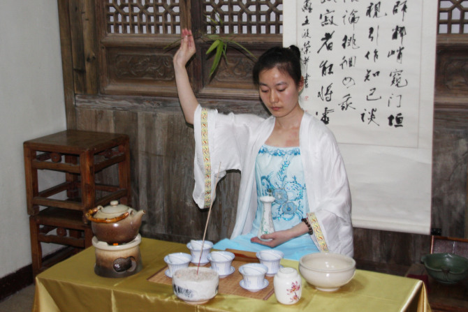 这是师妹作的一套《碧水禅心》茶艺表演。