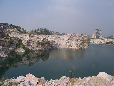 紫泥产于丁蜀镇黄龙山,深藏在黄石岩下,夹杂于夹泥矿层中,现在这里已经不再开采泥矿,而成为丁蜀镇的一个自然景观。