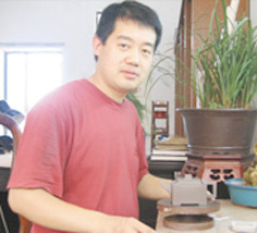 张云熙,国家级助工,精于陶刻,同时擅长制作花盆、杂件。