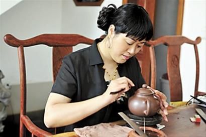 一抔五色土,刻画出世间让人沉醉的美妙万物,件件逼真,神采飞扬。这位貌似巩俐的紫砂艺人沈锡芬,用她灵巧双手,建造自己的紫砂王国。温婉灵秀的她,仿佛汲取了江南的灵气,纤纤玉手之下,拿捏出绚丽纷繁的紫砂艺术精品。