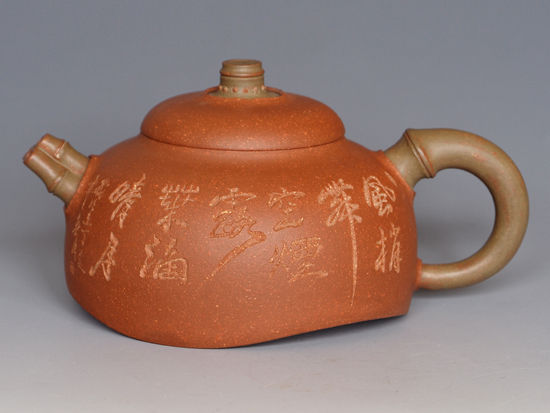 朱泥料最是神秘,是玩家也往往犯晕的泥料。实在我们只需要紧紧掌握住“质感”这一特性。好的朱泥料有分量感,壶表质感也很丰硕。亮亮的象玻璃一样的料不要碰,那往往是添加玻璃水的效果;烧成品颜色是红中泛黄,那些红艳艳的大多是添加了铁红。朱泥料基本上是由一群默默无闻的民间艺人在制做,所以制作工艺大多仍是沿袭传统工艺,所以朱泥壶的作伪也最难辨识。
