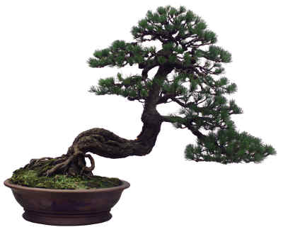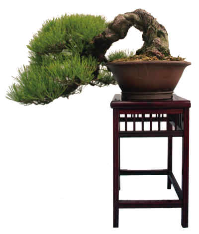 赏析:树干老态,凹凸嶙峋的黑松桩,主体横卧盆钵后向下曲折延伸呈半悬崖状,艰难地生长。作者独具匠心,把树的造型与中华民族的神灵之物龙连为一体,耐人寻味。