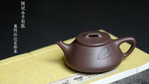 周斌全手力作 知秋精炼刀法 蕉阴浓处烹新茶 全手大口石瓢 高温老紫泥