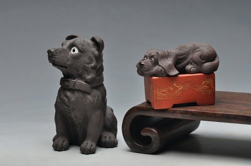 栩栩如生 拉毛狗 一对~ 好玩
