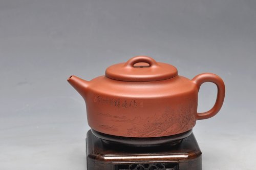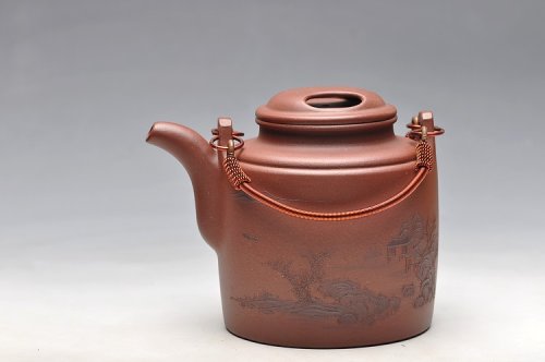 猪肝色底槽青 仅此一把 全手洋桶 精彩泥绘山水 不接受定制
