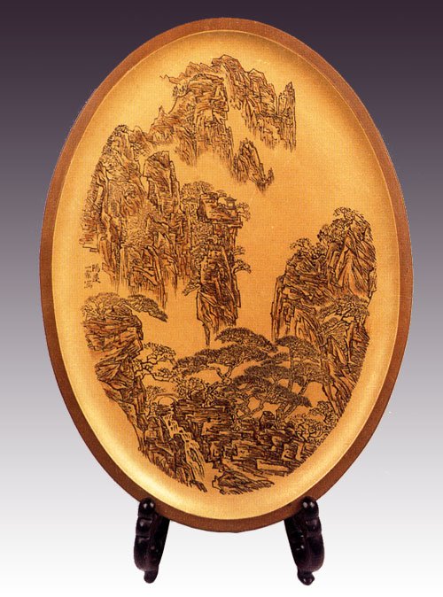 陶刻山水图挂盘