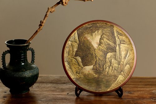 张听刚新意装饰 山水挂盘 紫砂着色 韵味十足 精品~