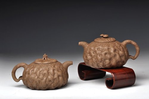 邵惠雄风格 全手龚春 灵芝和瓜纽一对 薄胎