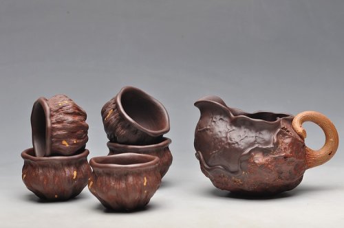 一对高矮胖瘦绝配:) 清水泥和地槽青 全手梅花单杯