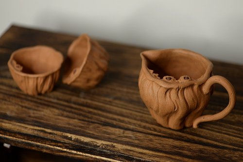 学院派风格之全手莲蓬公道+2个手工莲子杯 肌理丰富 各有风味~