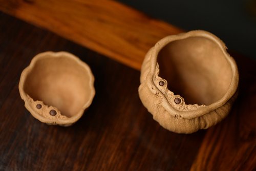 段泥做底粉朱泥浆 老味俱显 达摩杯与对茗杯
