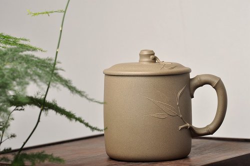 美壶特惠 黄龙山原矿青水泥 高温竹节盖杯