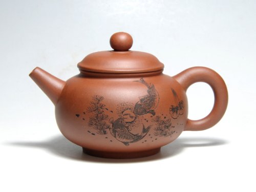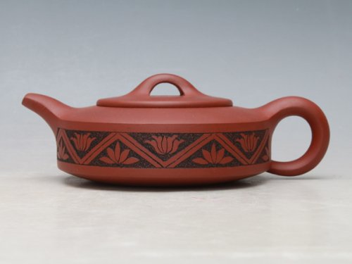 美壶特惠 特好紫泥扁玉壶 装饰不老松 文气十足 编号34617 美壶定制