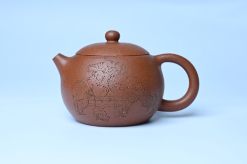 油润降坡泥全手工小品西施壶 装饰童子图 天真无邪
