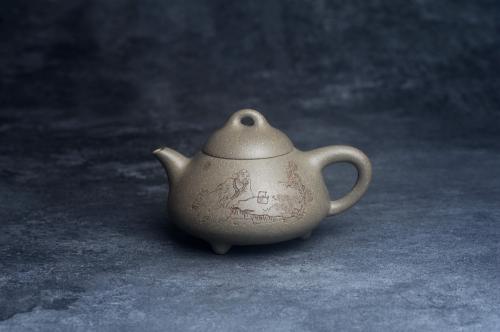 美壶特惠 特好老黄段泥精致子冶石瓢壶 君子唯爱竹 特文气