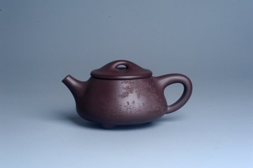 实力派助工周斌 优质底槽青全手工精工 子冶石瓢壶 张听钢精刻山水 青山似欲留人住 香茗何妨为客尝