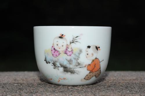 彩绘 童子钓鱼杯 栩栩如生 景德镇主人杯