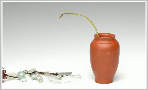 全手朱泥雅致小鸟花瓶