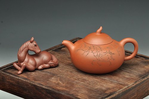 壶型传统 端庄大方 全手曼生匏瓜壶 八骏图 编号2897 周斌