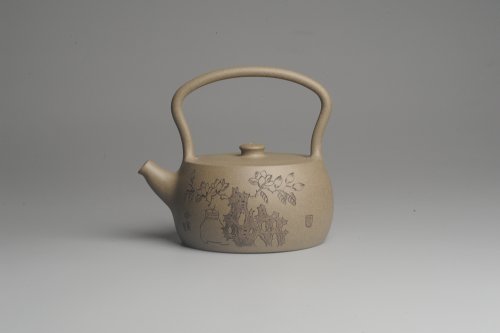 美壶特惠 老青段 助工精工太白提梁 装饰抚琴图 文气雅致 编号33784 美壶定制