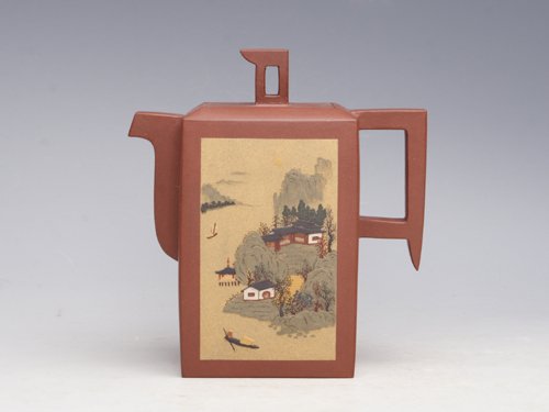 紫砂壶图片:描金兰花之玉柱 - 美壶网