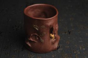 美筒特惠 精致全手工紫泥藏蟾笔筒 高12cm直径10cm 贴叶灵动 金蟾生动 编号34004 赵老师