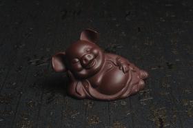 美宠特惠 精工高枕无忧猪茶宠摆件 神态传神 茶盘尤物 长12cm高8cm 编号33713 美壶定制