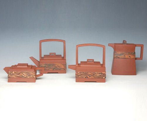 美壶特惠 沈老师年末精工老紫泥冰纹 绞泥紫砂雨花石 井栏套壶 一壶200cc 二杯(每杯88cc) 编号34003 美壶定制