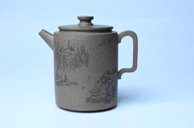美壶特惠 蠡墅大水潭深井老天青泥 精致圆础壶 装饰山水 茶人醉爱 编号34331 美壶定制老师