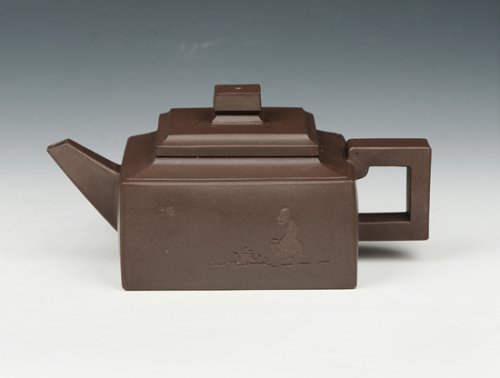 • 油润底曹青 全手工德中茶壶 装饰人物特文气 编号34134 周小培