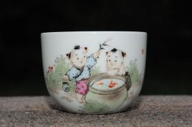 彩绘 童子钓鱼杯 栩栩如生 景德镇主人杯 编号24648 古月山房