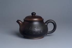美壶特惠 精致青灰段泥混方巨轮壶 茶壶 无事竹间坐 有情化外游 编号34028 美壶定制