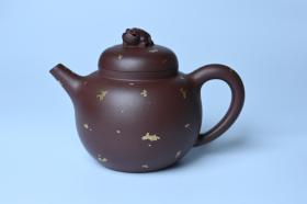 潜力股周小培 全手工原创招财壶200cc 金蟾屹立于壶盖 撒金工艺铺满壶身 寓意黄金落满地 招财进宝 编号34161 周小培