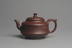 紫砂壶图片:国助工唐文作品  国助工袁德波装饰通转梅花 优质段泥 传统器形 扁石 - 美壶网